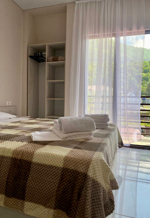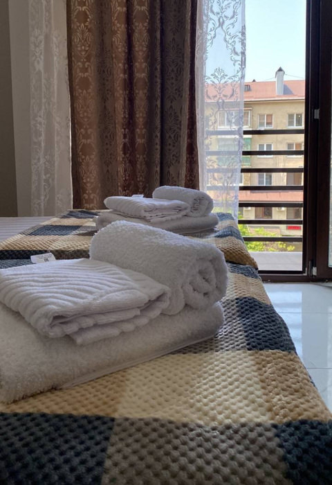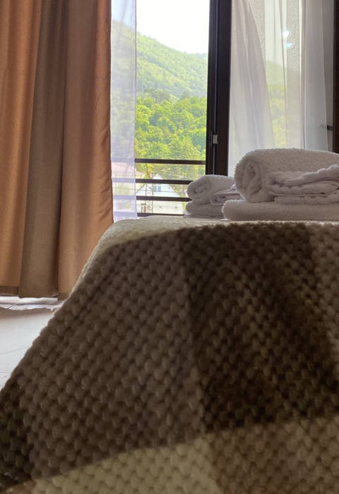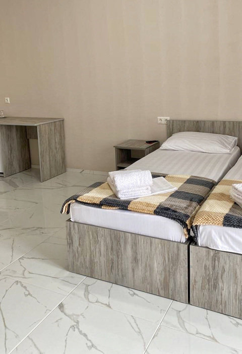 Площадь номера - 25 кв.м. 1 комната. 2 осн. места. номера находятся на 3-4 этажах, вид на город/горы. На этаже: кулер с горячей и холодной водой и гладильные принадлежности. В номере: телевизор; балкон; кондиционер; душ; туалет; 1-спальные/ 2-спальная кровать; мини-холодильник. 2 доп. места: