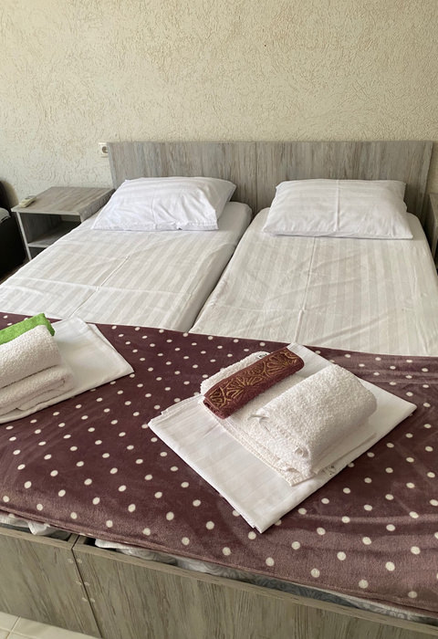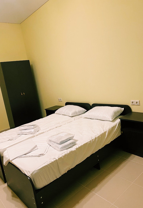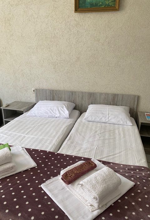 Площадь номера - 20 кв.м. 1 комната. 2 осн. места. номера находятся на 1 -2 этажах, на этаже: кулер с горячей и холодной водой и гладильные принадлежности. В номере: телевизор; кондиционер; душ; туалет; 1-спальные/ 2-спальная кровать; мини-холодильник. 2 доп. места: